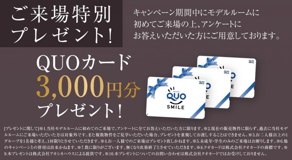 Quoカード 3,000円分 をプレゼントさせていただきます!!