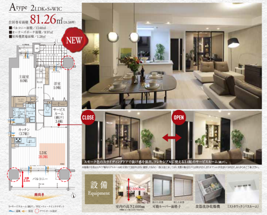 3.4帖のサービスルーム(納戸)をスモーク色のスライディングドアで